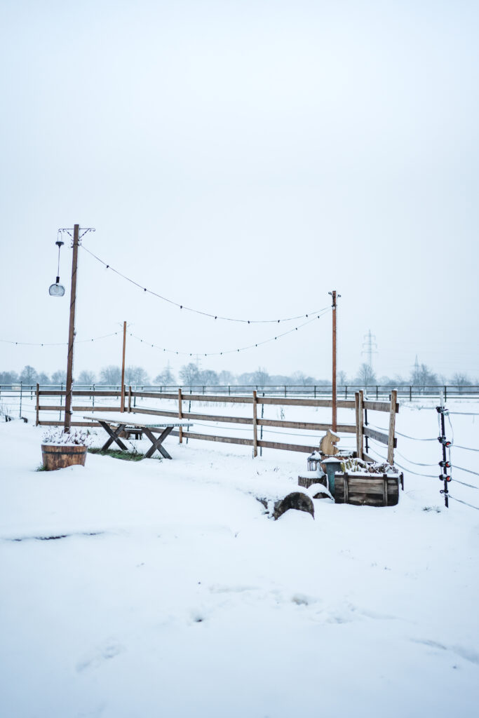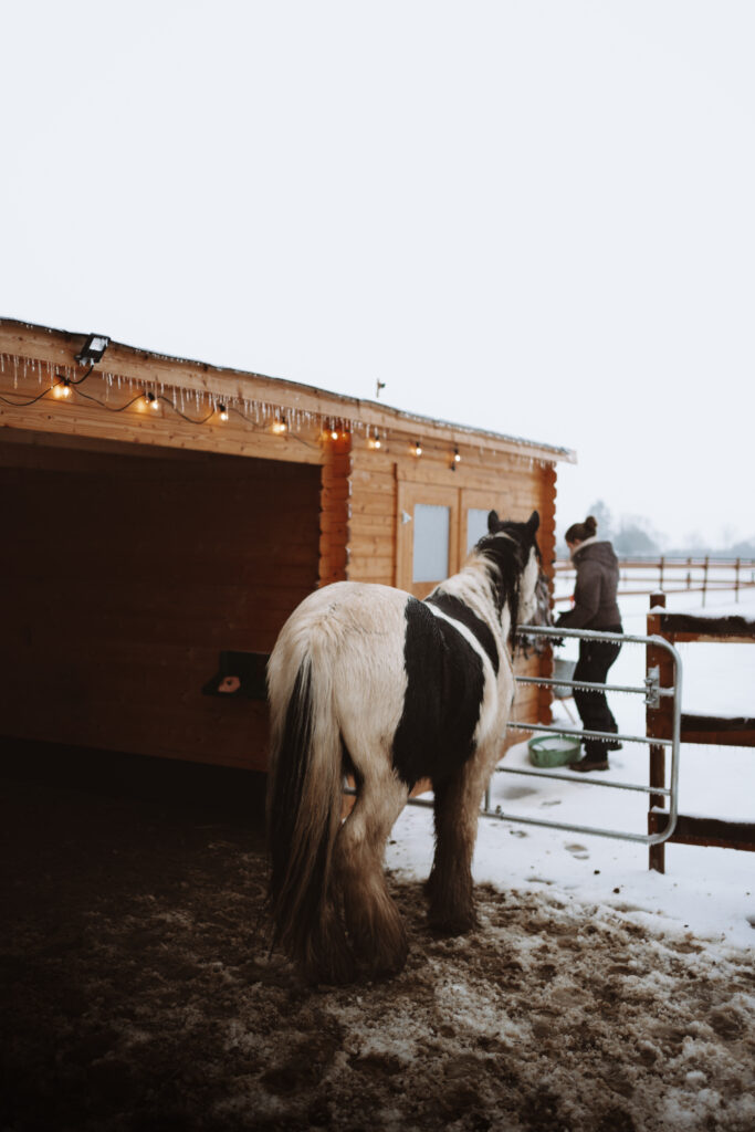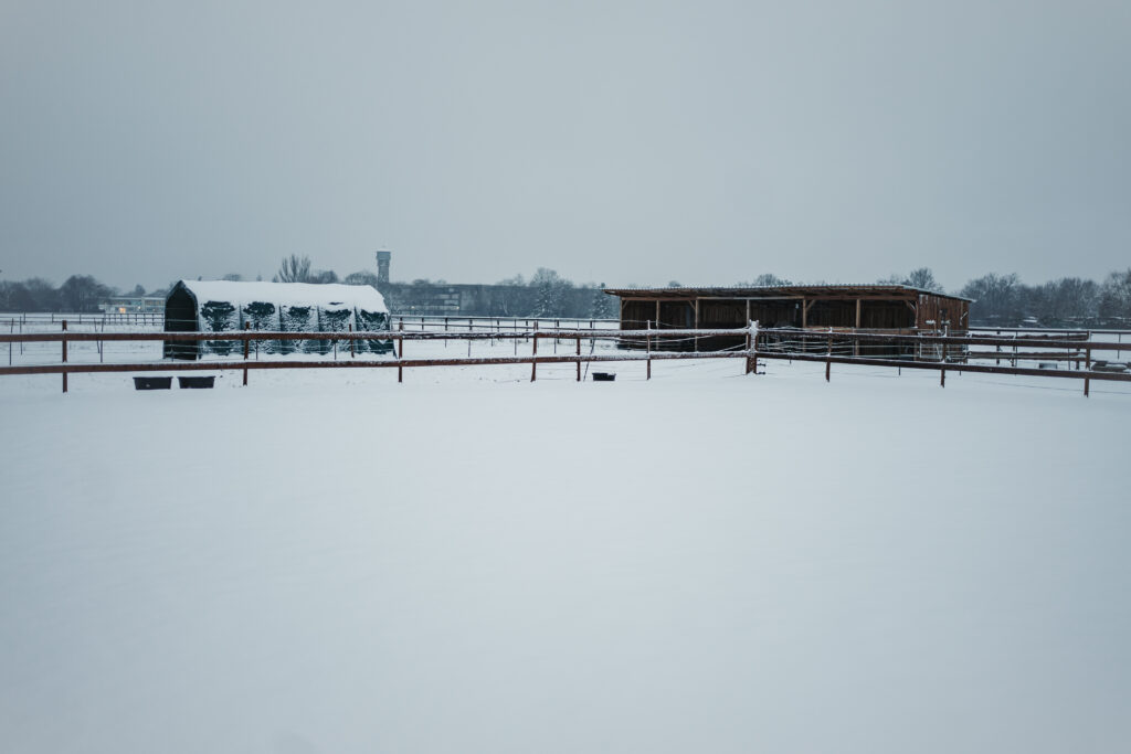 Der zweite Winter, Ende 2025, kam mit kräftigem Wind, viel Matsch, Schnee und immer wieder Regen. Wir haben die Tage gezählt und freuen uns umso mehr auf den Frühling. Wir waren allerdings besser vorbereitet als letztes Jahr. Wärmer Kleidung, dicke Decken für die Pferde und neuer Unterstand hat uns vor vielem Geschützt.